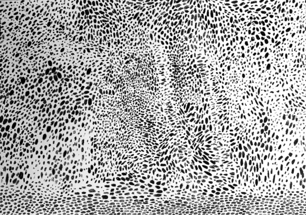 Ранији циклуси, инспирисани монументалношћу архитектонских кулиса, били су тема и повод Олгичиних слика, сад је своје радове оголила до цртежа, нетачно је рећи вратила се цртежу, јер од њега никад није ни отишла. Осободила се боје, вратила на прапочетак, одлучила да угаљ и папир буду средство једног уметничког бића које у међупростору звука и енергије, гради цртеж у свој његовој једноставности и комплексности. Селекција радова је визуелна интерпретација звучности јер се усудила да чује своју уметност, како би забележила сваки такт угљена и папира, али и свог унутрашњег. Ако свака појава има енергију, има и звук. Звук има различите фреквенције доступне или недоступне осетљивости слуха. Слух може бити емпиријски или метафизички, слух за музику, за лирику, за ликовно. Изабрана фотографија једног сећања је само прагматични предложак који ће изнедрити најразличитије датости тог пејзажа. Она постепено апстрахује предметност мотива, транспонује га у сведену асоцијативност, да би у крајњем исходу то био апстрактни предео, специфичне атмосфеличности и смисаоности. Папир и угаљ у својој скромној непретенциозности наводе на штур и сиромашан израз једног рада, ипак постојање духовног у уметничком бићу производи симфонију доживљаја. Минуциозношћу уметница достиже хармонију композиције, где