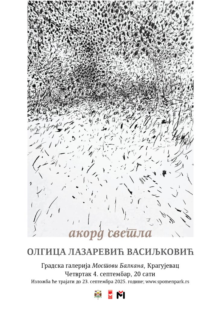 Уметница обликује простор и форму, гради емоцију и наратив, сваки цртачки акорд наговештава следећи, па је цео скуп радова – музичко–ликовна партитура сагласја. Светлост у уметности није само средство за приказ и оптички феномен, светлост центрира наш фокус као носилац идејног, емотивног, филозофског. Од ренесансног моделовања форме, преко импресионистичког хватања тренутка, до савремених инсталација које светлост третирају као материјал, уметници су кроз векове размишљали о светлости као о мосту између чулног и духовног. Светлост доноси истину и лепоту из таме, светлост је илузија којој верујемо, обликује оно што нас привлачи и интригира, сенке откривају дубинско у уметнику.