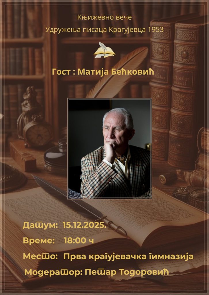 10 децембар Поетско вече „У пламену стиха“ Арт кафе Бети форд, Скадарлија, Београд 17 децембар Књига кратких прича “КОБ“ Братислава Милановића Галерија НБ ''Вук Караџић'' Крагујевац Поставите коментар Cancel ReplyКоментар* Име* Ел. пошта * Место на мрежи Сачувај моје име, е-пошту и веб место у овом прегледачу веба за следећи пут када коментаришем.